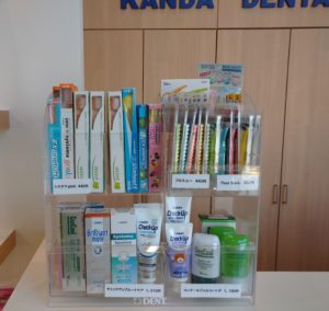 当院では、衛生士さんが歯石取りなどの治療で説明用に使用した歯ブラシや歯間ブラシなどを買って帰ることもできます。